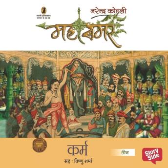 महासमर-3 (कर्म) की कथा युधिष्ठिर के युवराज अभिषेक के पश्चात की कथा है। इस युवराज अभिषेक के पीछे मथुरा की यादव शक्ति है। अपनी राजनीति में उलझ जाने के कारण जब यादव पाण्डवों की सहायता नहीं कर पाते, दूसरी ओर गुरु द्रोण का वरदहस्त भी पाण्डवों के सिर से हट जाता है तो दुर्योधन पाण्डवों को वारणावत में भस्म करने का षड्यन्त्र रच डालता है। वारणावत से जीवित बच कर पाण्डव पांचालों की राजधानी काम्पिल्य में पहुँचते हैं। पाण्डवों का वारणावत से काम्पिल्य पहुँचाने की योजना इस कथा खण्ड का महत्त्वपूर्ण पक्ष है। उन्हें हिडिम्ब वन से किसने निकाला? उनके काम्पिल्य तक सुरक्षित पहुँचने की व्यवस्था किसने की? और उन्हें काम्पिल्य ही क्यों लाया गया? इस संदर्भ में विदुर, कृष्ण तथा महर्षि व्यास के नाम लिये जाते हैं। लेखक का विचार है कि इस संदर्भ में तीनों की ही अपनी-अपनी भूमिका है। हमारे पाठक के मन में सदा से एक प्रश्न काँटे के समान चुभता रहा है कि एक स्त्री के पाँच पुरुषों के साथ विवाह कर दिये जाने के पीछे क्या तर्क था? उसका औचित्य क्या था? लेखक ने अपनी विशिष्ट, तथ्यपरक, तर्कसंगत शैली में इन प्रश्नों के समुचित उत्तर इस खण्ड में दिये हैं। पाण्डवों का हस्तिनापुर लौटना एक प्रकार का गृहआगमन भी है और मृत्यु के मुख में लौटना भी। किन्तु इस समय वे असहाय व भयभीत पाण्डव नहीं हैं और यादवों तथा पांचालों की सैन्य शक्ति उनके साथ है। यदि आज वे अपना अधिकार नहीं माँगेंगे तो कब माँगेंगे। पाण्डवों का सत्कार होता, किन्तु धृतराष्ट्र की योजना उन महावीर पाण्डवों को पुनः हस्तिनापुर से निष्कासित कर, खाण्डवप्रस्थ वन में फेंक देती है। भीष्म, विदुर, कृष्ण तथा व्यास के होते हुए भी पाण्डवों को हस्तिनापुर क्यों छोड़ना पड़ा? ऐसे ही और सहज प्रश्नों का समाधान प्रस्तुत करता है यह उप