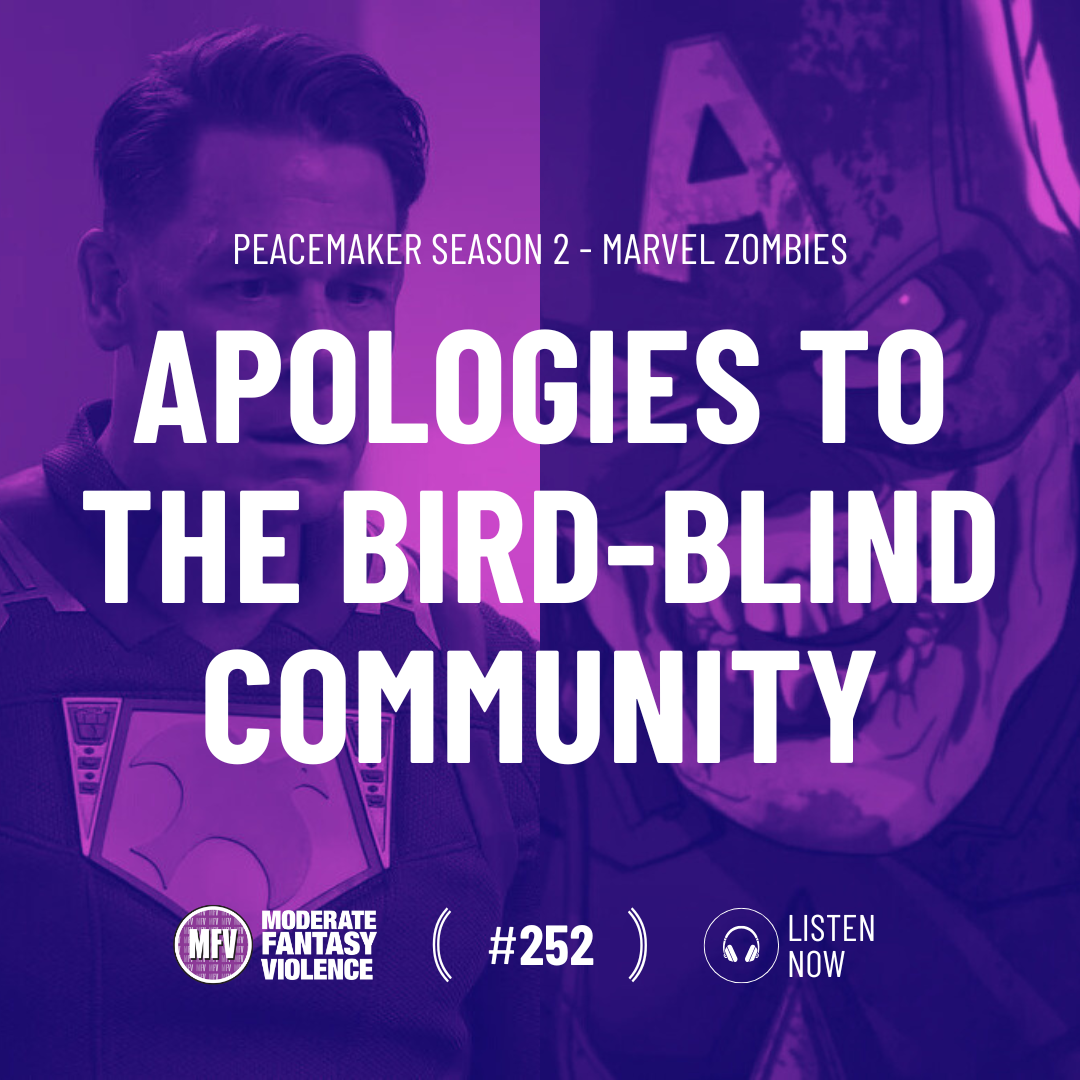 This fortnight, another double-superhero podcast, with DC's Peacemaker season 2 (20:44) and Marvel Zombies (38:55) from, shockingly, Marvel providing our token Halloween content.