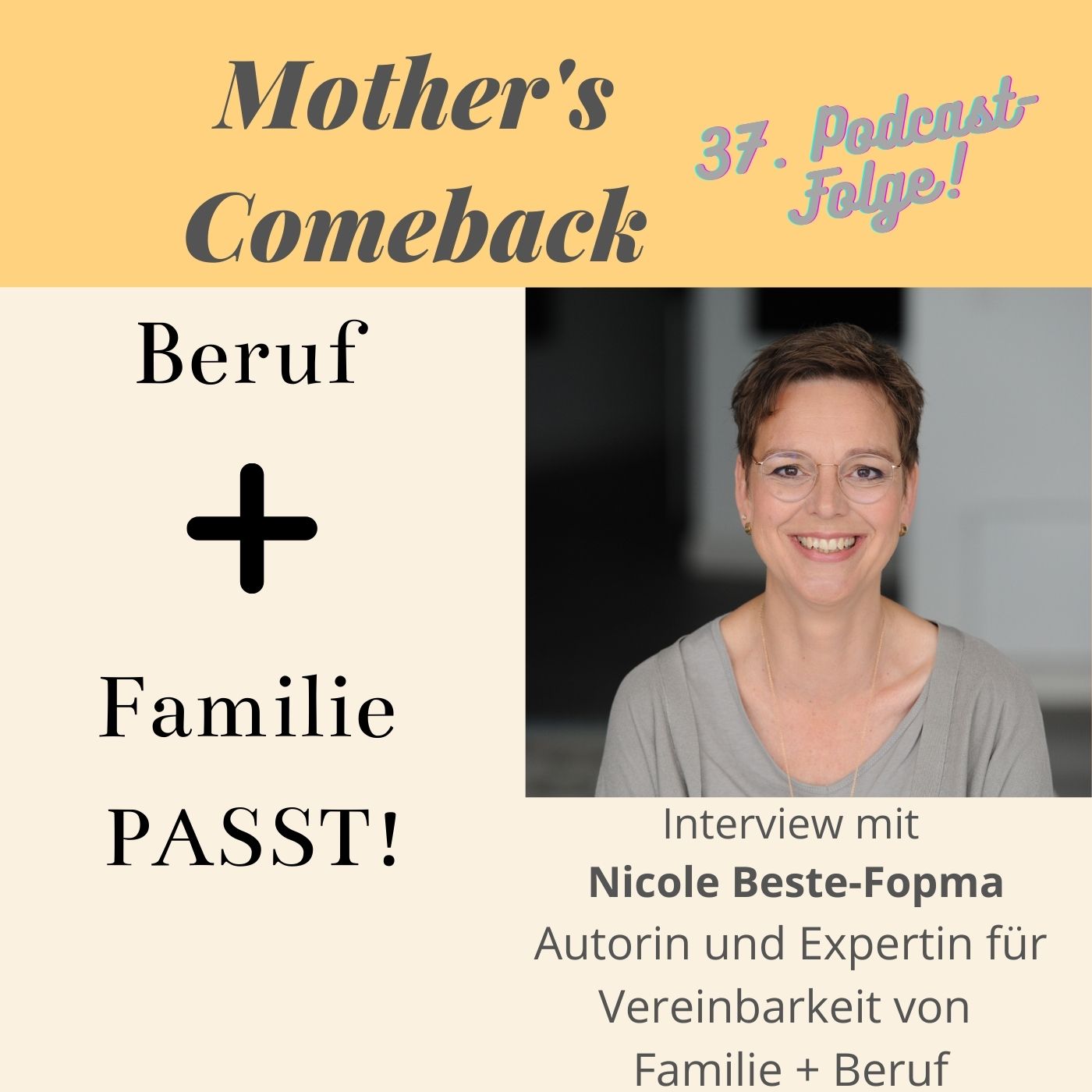 in dieser Folge spreche ich mit der großartigen Nicole Beste Fopma, die schon vor einiger Zeit ein tolles Buch zur Vereinbarkeit von beruf und fAmilie geschreiben hat "Beruf + Familie PASST!". Darin gibt sie unzählige Tipps zur Planung der Karriere bei Kinderwunsch, als werdende Eltern, zur Vorbereitung der Elternzeit und des Wiedereinstiegs nach der Elternzeit und auch für die Jobsuche nach familienfreundlichen Arbeitgebern.