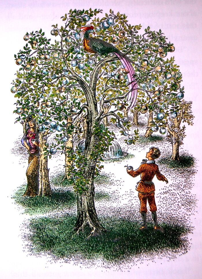 Digory is tempted by Jadis in the garden.