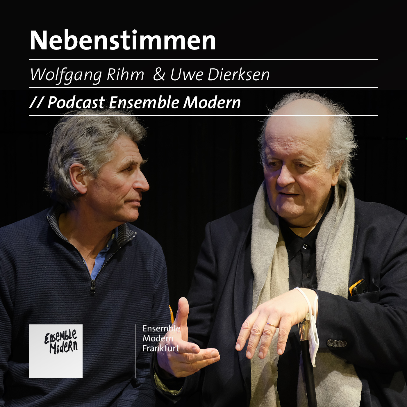 In “Nebenstimmen” hören Sie Gespräche von Ensemble-Mitgliedern mit von ihnen selbst ausgewählten Gesprächspartnerinnen und -partnern zu Musik, Kunst und Leben. In dieser Folge spricht Posaunist und Ensemble Modern Mitglied Uwe Dierksen mit dem Komponisten Wolfgang Rihm über dessen Studium bei Karlheinz Stockhausen, die Anfänge seines Werkes “Jagden und Formen”, aber auch die Schwierigkeiten in seinem Leben. Wann interpretiert, wann exerziert man eine Komposition? Wie formuliert Rihm den Grundgedanken hinter dem Komponieren?