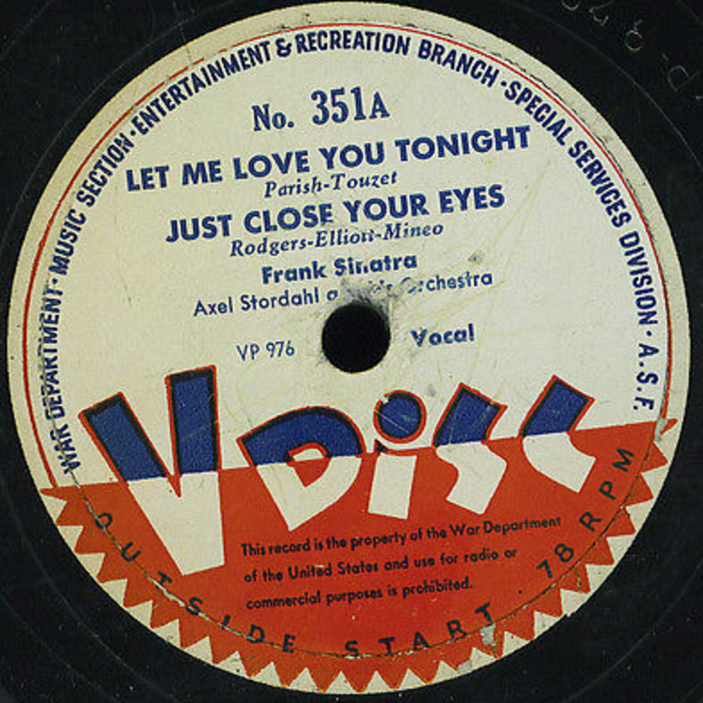 We're featuring V-Disc recordings from 1944 by Frank Sinatra, Les Paul Trio, Art Tatum and Carol Bruce, Red Norvo, Gene Krupa, Nat King Cole Trio, & Bing Crosby +Old Time Radio Time: Fibber McGee & Molly 1/19/43!