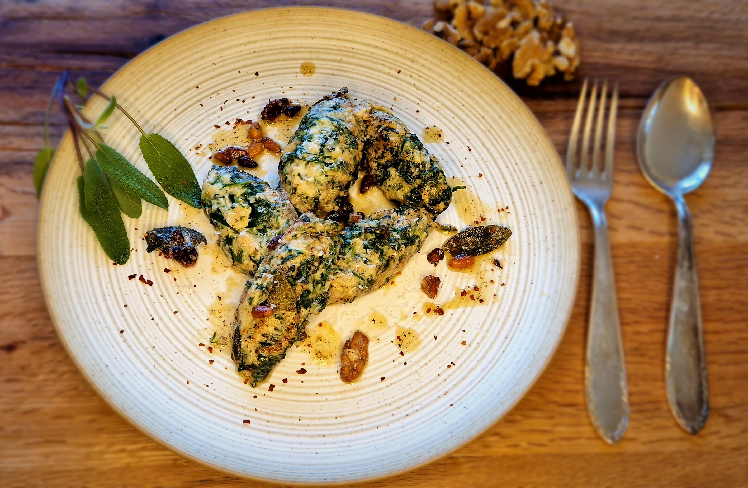 Wir kochen heute gemeinsam einen Klassiker der italienischen Küche, welchen ihr aber auf den meisten Speisekarten von italienischen Restaurants nicht finden werdet. Warum ist mir eigentlich nicht ganz klar, aber vielleicht liegt es auch an der Wortbedeutung von Malfatti, denn übersetzt heißen die Spinat-Ricotta-Nockerln so etwas wie: die Schlechtgemachten! Und dieser Name rührt wahrscheinlich daher, dass Malfatti am Ende nicht die fotogensten Nockerln sind, die man zaubern, könnte, weil der hohe Ricotta-Anteil eben dazu führt, dass sie nicht wirklich fest werden und daher manchmal etwas zerzaust und zerrupft aussehen können, wenn Sie aus dem Wasserbad kommen. Dabei ist genau diese fluffige Konsistenz, das, was sie in eurem Mund zu einem tollen Erlebnis werden lassen.