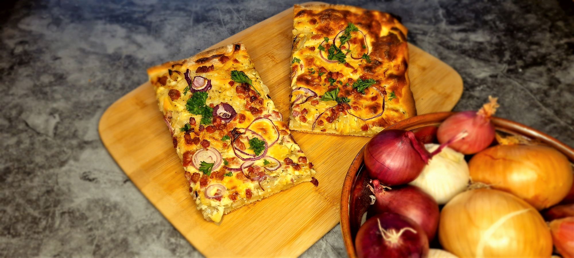 Ich begrüße euch zu Folge 94, liebe Koch-Rookies! In der heutigen Folge sind wir mal knallhart saisonal, wenn wir über das klassische Rezept eines Zwiebelkuchens sprechen. Obwohl alle Zutaten dafür ganzjährig vorrätig sind und es sich darüber hinaus um ein sehr preiswertes und mega leckeres Essen handelt, trifft man ihn meist dann, wenn er von jungem Wein begleitet werden kann. Und das ist dann eben im Herbst der Fall und die Kombination mit einem frischen Federweißen scheint unschlagbar.