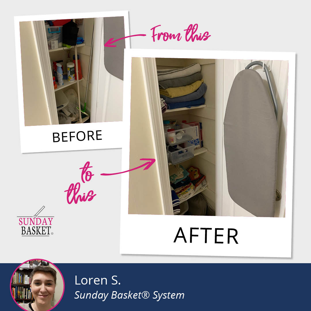 This week, I am sharing my interview with Loren S. She lives with her boyfriend and her 10 houseplants. Loren describes herself as a natural "piler" but implementing the Sunday Basket® System means that she now has fewer piles around her home. She and her boyfriend participated in the Adult Spring Break Blitz by cleaning out and reorganizing their linen closet together. Loren also introduced me to The Conqueror Challenge, which is an app that gamifies exercise.
