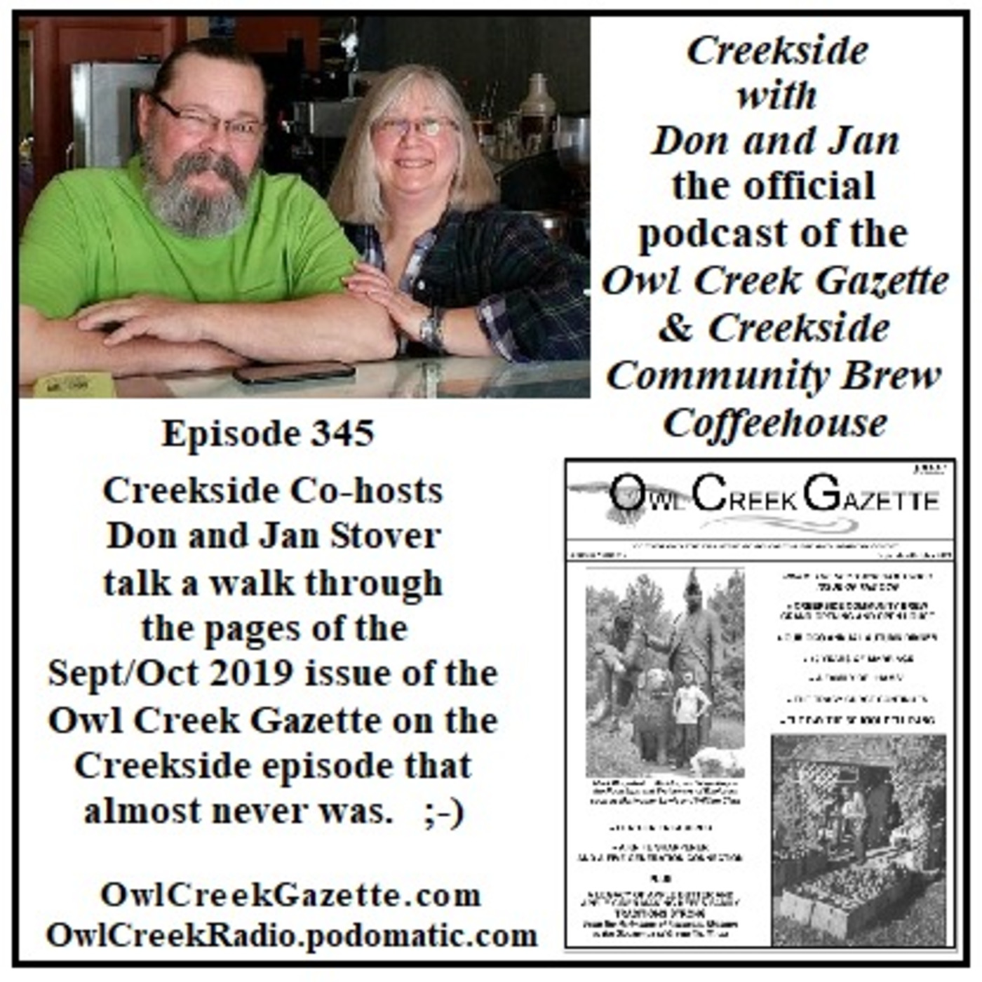 A quick romp through the September & October Owl Creek Gazette plus a few newsie happenings at the coffeehouse. (AKA The Episode that almost wasn't.)