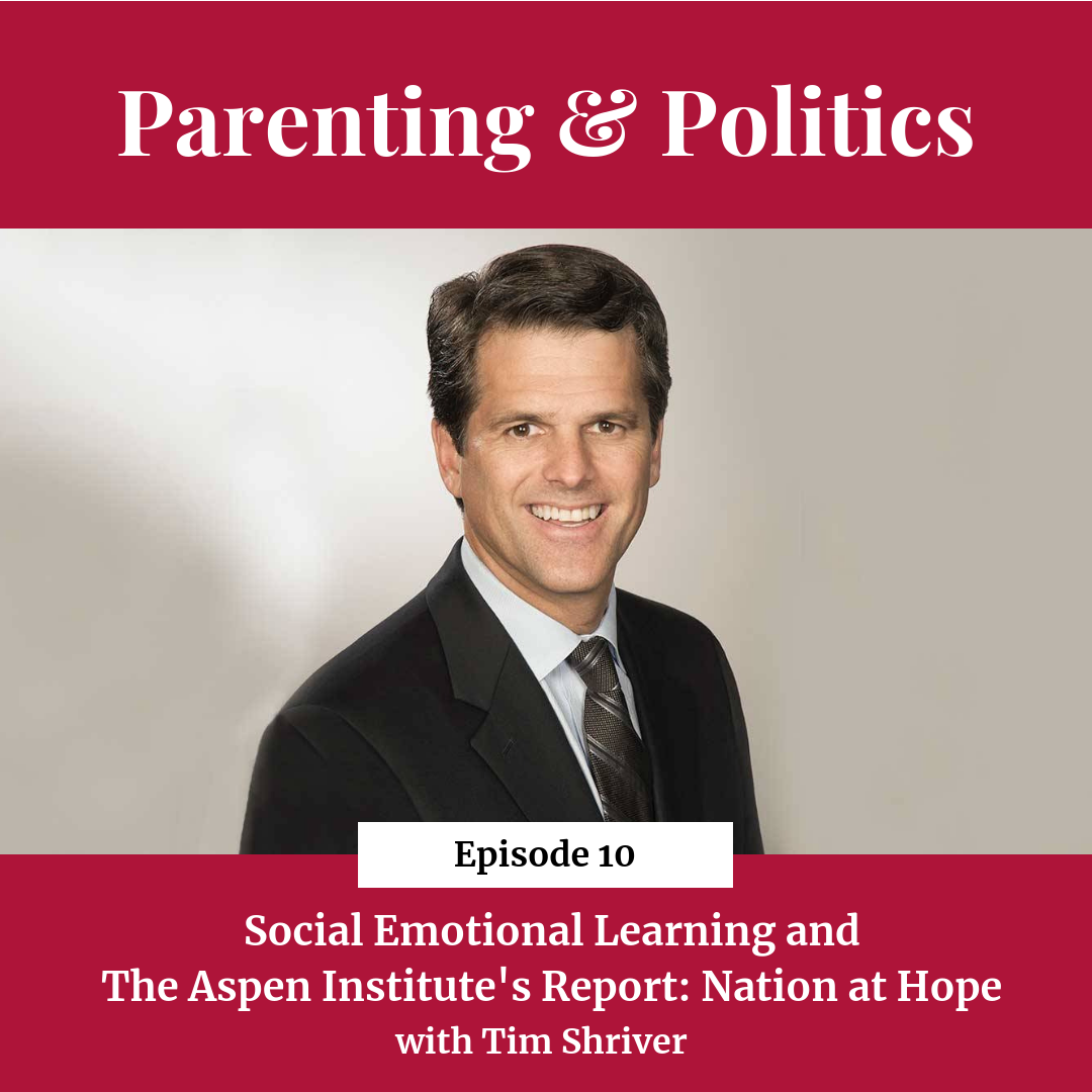 In this episode Diana talks to Tim Shriver, one of the co-founders of CASEL, the Collaborative of Academic, Social and Emotional Learning and the Co-Chairman of the Aspen Institute's Commission on Social, Emotional and Academic Development about social emotional learning and the Commission's Report, "From A Nation at Risk to a Nation at Hope."