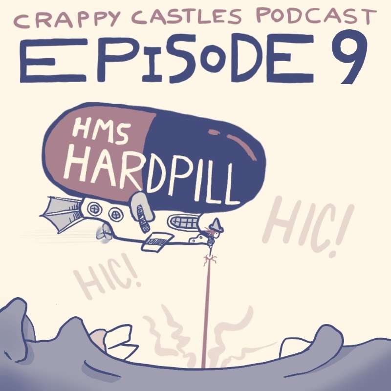 Ian and Travis solve an elderly heiress's hiccups FROM THE INSIDE. And give you an airship adventure that you'll never forget. Plus: cab-sav-blancs, catch-your-own dinners, and the greatest pun in Crappy Castles history.