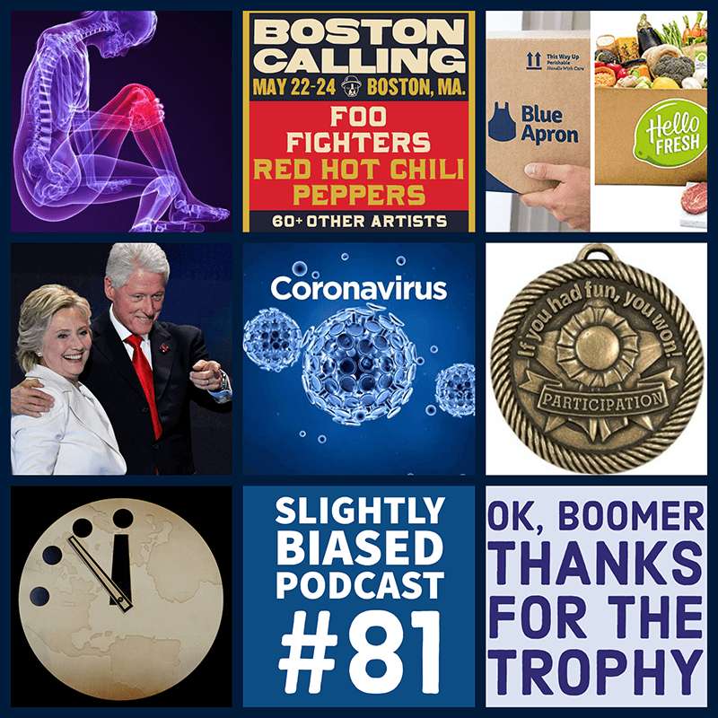 As always, we dive into some hot takes and rants about Baby Boomers, participation trophies, helicopter parenting, the Clintons (yes, those Clintons!), coronavirus, climate change, and the ticking of the doomsday clock. Recorded on 1/23/2020, this episode is full of laughs, life updates, and unfiltered opinions.