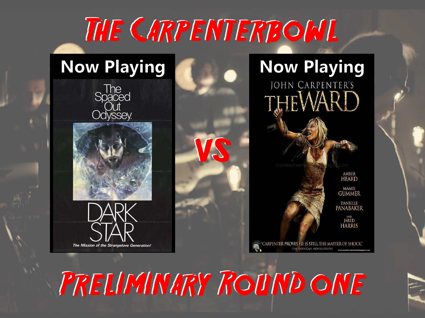 Everyone, the Carpenterbowl has arrived! In the interdimensional time stream an idea launched out of the heart of the universe and struck the Hijinks crew, the fusion of fantasy sports with a stalwart director of Hollywood's fantasy hills. Each match of the Carpenterbowl will pit two of John Carpenter's films against each other until one remains. And as we go on that gladiatorial journey, the Hijinks crew will select antagonists and allies alike from the worlds he created. We begin with Carpenter's last film versus his first. The Ward. Dark Star. Fight! -Ion