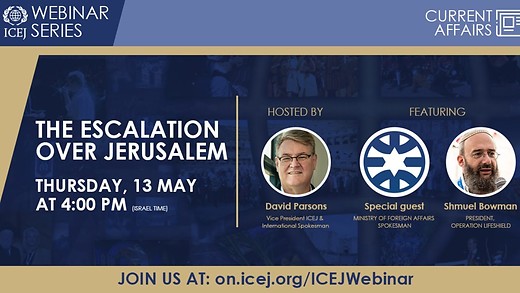 Join us for the ICEJ Webinar: The Escalation Over Jerusalem. ICEJ VP and Senior Spokesman David Parsons will be joined by Shmuel Bowman the President of Operation Lifeshield and a special guest from the Israeli Ministry of Foreign Affairs to speak about the current escalation of violence in Israel.