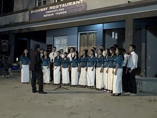 A Mizo singing group welcomes the Jewish Voice medical outreach team to the mountain village of Serchhip in Mizoram, India on Tuesday night, March 2, 2010.
