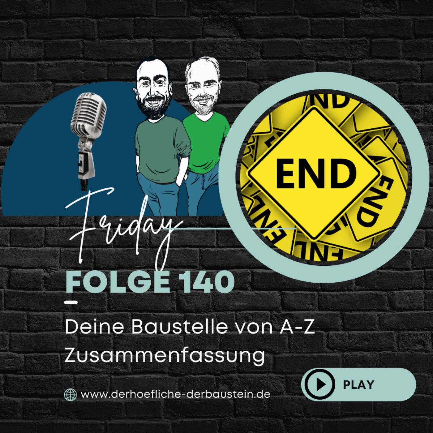Heute setzen wir den Schlusspunkt. Keine Angst wir verschwinden nicht von der Podcastfläche. Aber unsere Podcastreihe deine Baustelle von A-Z- wird heute mit der 140. Folge von uns mit dem Buchstaben Z beendet. Wir haben den Buchstaben Z als Anlass genommen um für euch nochmal eine Zusammenfassung von der Podcastreihe zu produzieren. Schaut auf unserer Homepage vorbei.Oder folgt uns auf Instagram