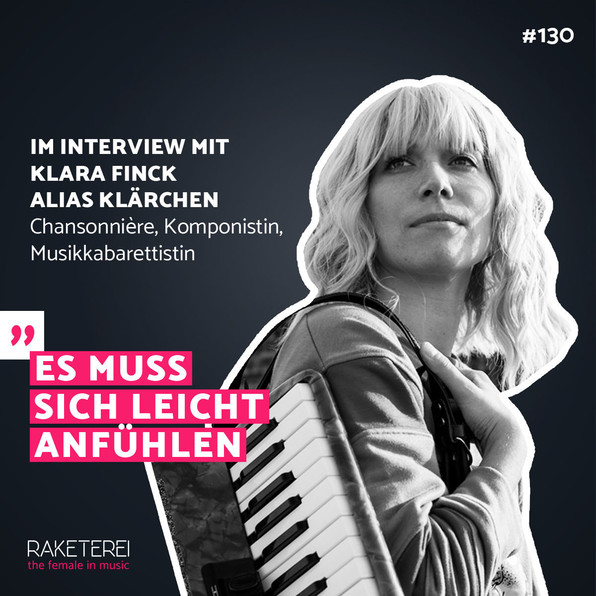 Klara alias Klärchen ist Chansonnière, Komponistin, Musikkabarettistin und Teil des RAKETEREI Gruppenprogramms. Aktuell tourt sie mit ihrem Bühnenprogramm »Wie erobere ich die Welt?« auf kleinen Kunstbühnen durch Deutschland und Österreich.