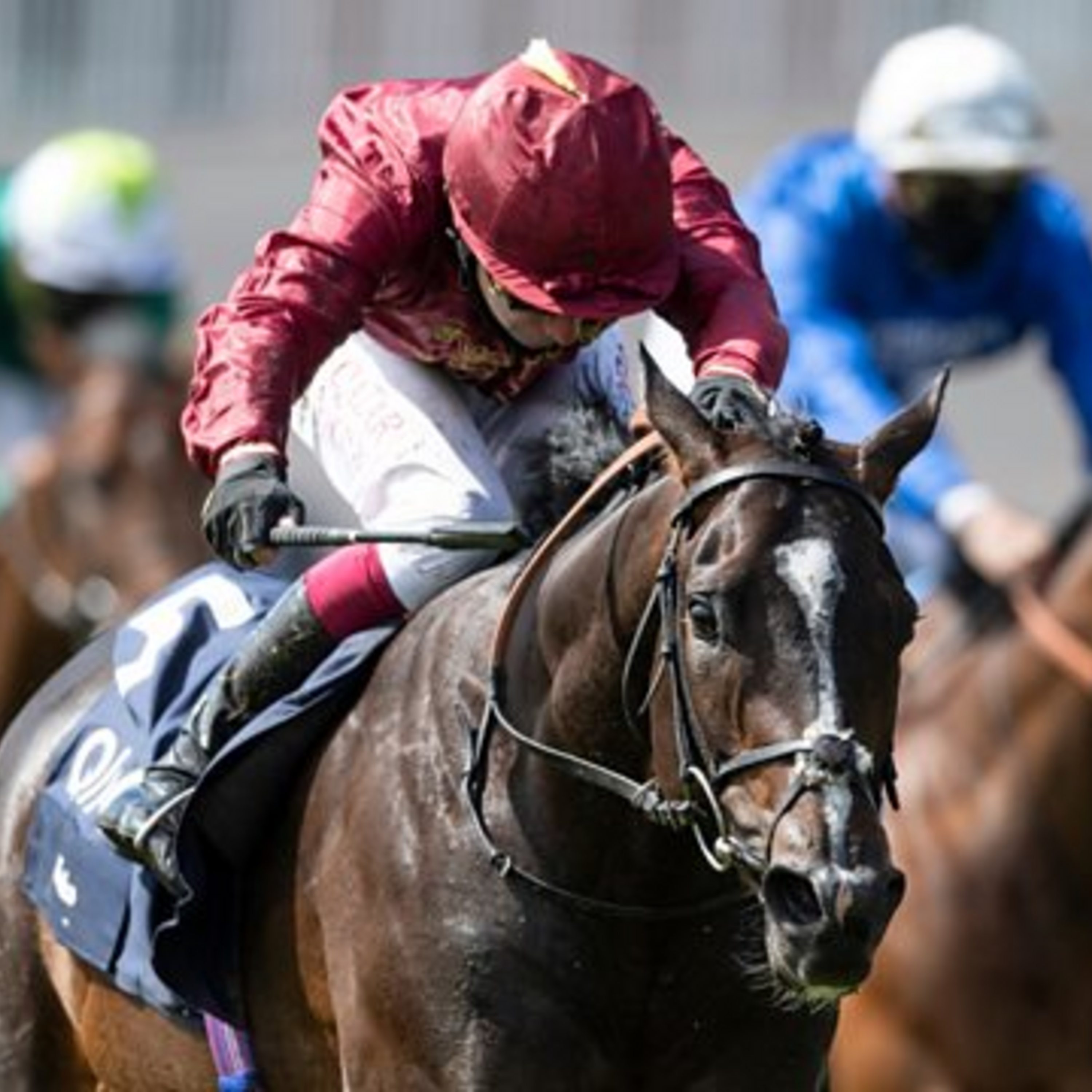 Photo: Kameko ridden Oisin Murphy approaches the finish line to win the Qipco 2000 Guineas Stakes at Newmarket Racecourse (Photo by Edward Whitaker/Pool via Getty Images)
