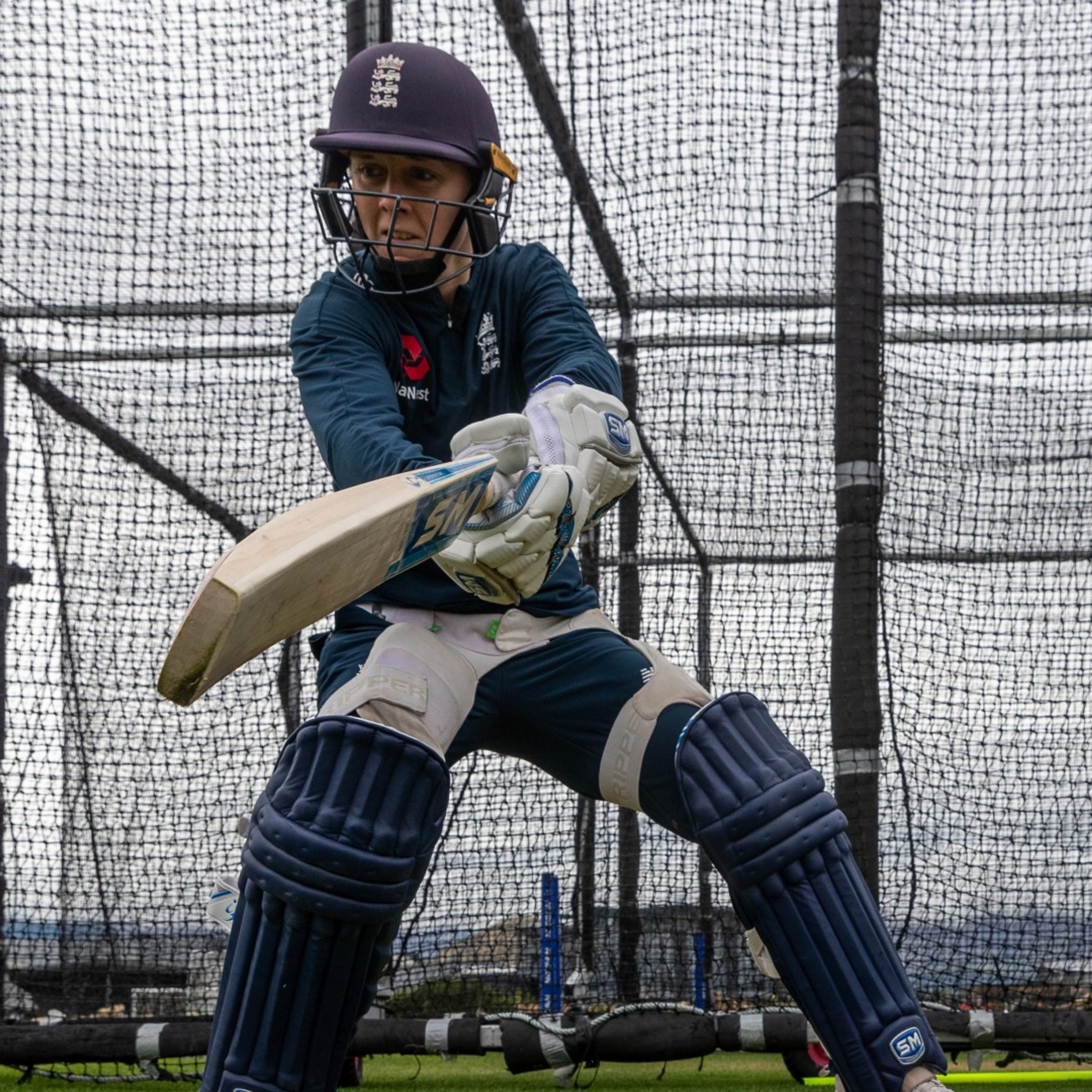 Photo: Heather Knight participates in a drill during an England touring side training session in Queenstown, New Zealand. (Credit: Getty Images)