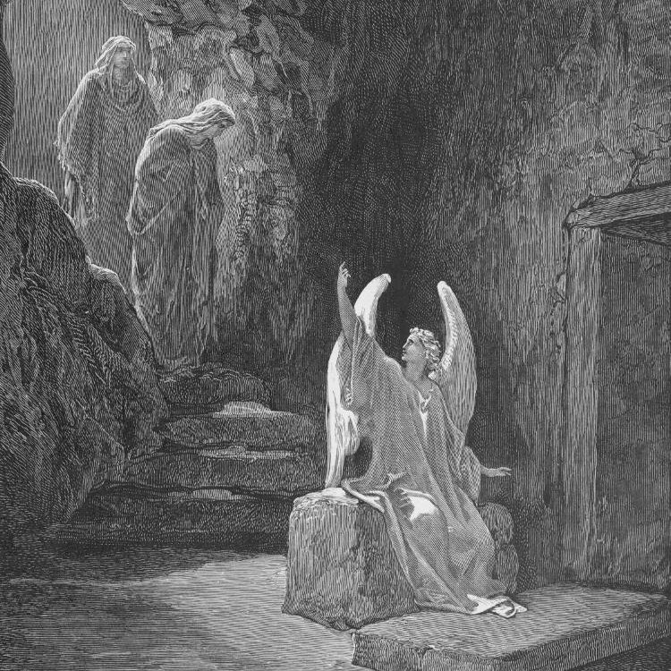 The angel of the Lord demonstrates how easy it will be. Moving the stone? Try moving the whole earth. Guards, already comatose with fear. The dead Christ? He is risen from the dead, and already has gone ahead of you to Galilee. Catch up! He was dead, but you’re the one’s who are late.
