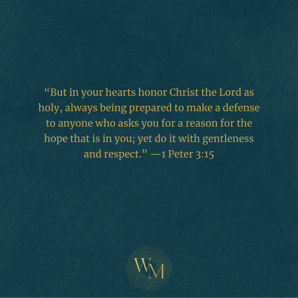 Peter taught the first-century Christians to “honor Christ the Lord as holy” and to “be prepared to make a defense to anyone who asks” about the faith we have, the hope that is in us because of Christ.