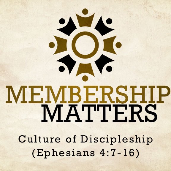 Blake White continues the preaching series Membership Matters with a sermon titled "Membership Matters: Culture of Discipleship" based on Ephesians 4:7-16.