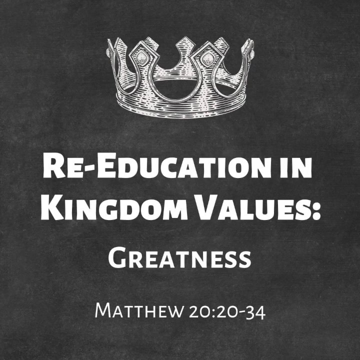 Blake White continues the preaching series on the book of Matthew with a sermon titled "Re-Education in Kingdom Values: Greatness" based on Matthew 20:20-34.