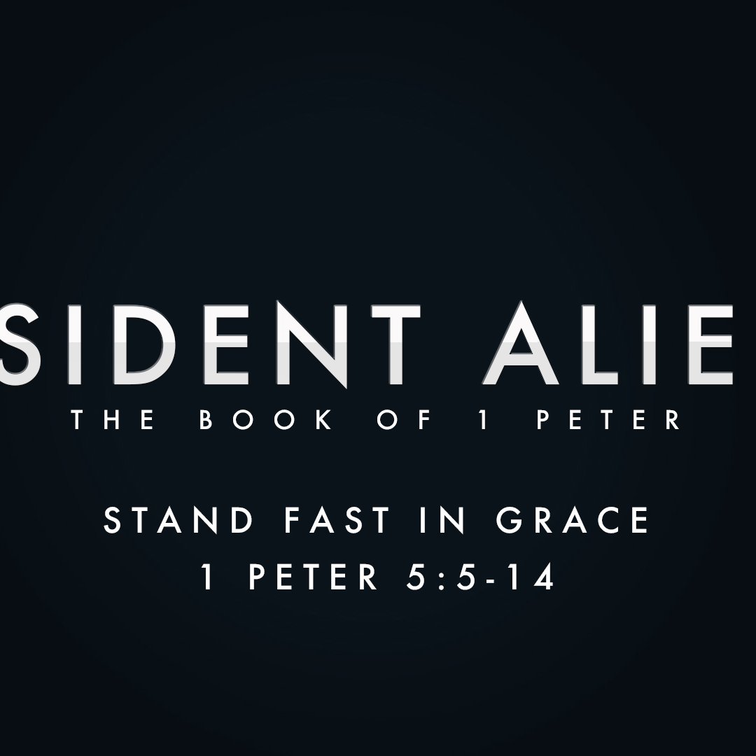Blake White concludes the preaching series "Resident Aliens: The Book of 1 Peter" with a sermon titled "Stand Fast in Grace" based on 1 Peter 5:5-14.