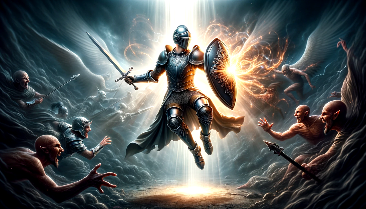Ephesians 6:10-18 AMP In conclusion, be strong in the Lord [draw your strength from Him and be empowered through your union with Him] and in the power of His [boundless] might. Put on the full armor of God [for His precepts are like the splendid armor of a heavily-armed soldier], so that you may be able to [successfully] stand up against all the schemes and the strategies and the deceits of the devil. For our struggle is not against flesh and blood [contending only with physical opponents], but against the rulers, against the powers, against the world forces of this [present] darkness, against the spiritual forces of wickedness in the heavenly (supernatural) places. Therefore, put on the complete armor of God, so that you will be able to [successfully] resist and stand your ground in the evil day [of danger], and having done everything [that the crisis demands], to stand firm [in your place, fully prepared, immovable, victorious]. So stand firm and hold your ground, HAVING TIGHTENED THE WIDE BAND OF TRUTH (personal integrity, moral courage) AROUND YOUR WAIST and HAVING PUT ON THE BREASTPLATE OF RIGHTEOUSNESS (an upright heart), and having strapped on YOUR FEET THE GOSPEL OF PEACE IN PREPARATION [to face the enemy with firm-footed stability and the readiness produced by the good news]. Above all, lift up the [protective] shield of faith with which you can extinguish all the flaming arrows of the evil one. And take THE HELMET OF SALVATION, and the sword of the Spirit, which is the Word of God.