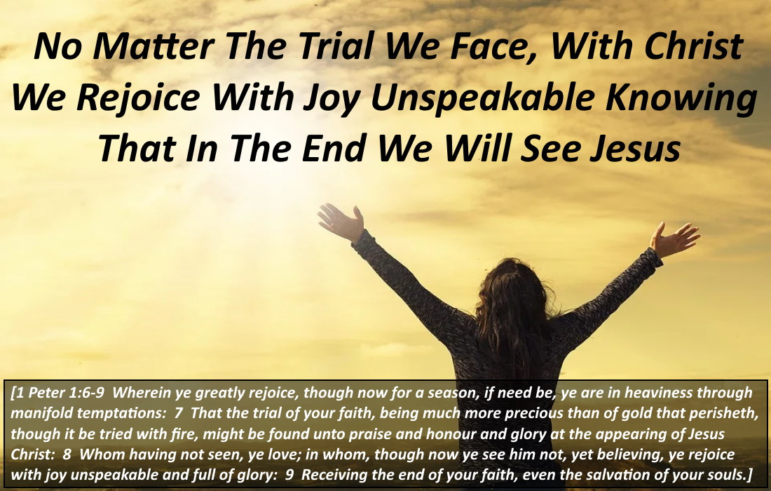 In this you greatly rejoice, though now for a little while you may have had to suffer grief in various trials so that the proven character of your faith—more precious than gold, which perishes even though refined by fire—may result in praise, glory, and honor at the revelation of Jesus Christ. Though you have not seen Him, you love Him; and though you do not see Him now, you believe in Him and rejoice with an inexpressible and glorious joy, now that you are receiving the goal of your faith, the salvation of your souls.