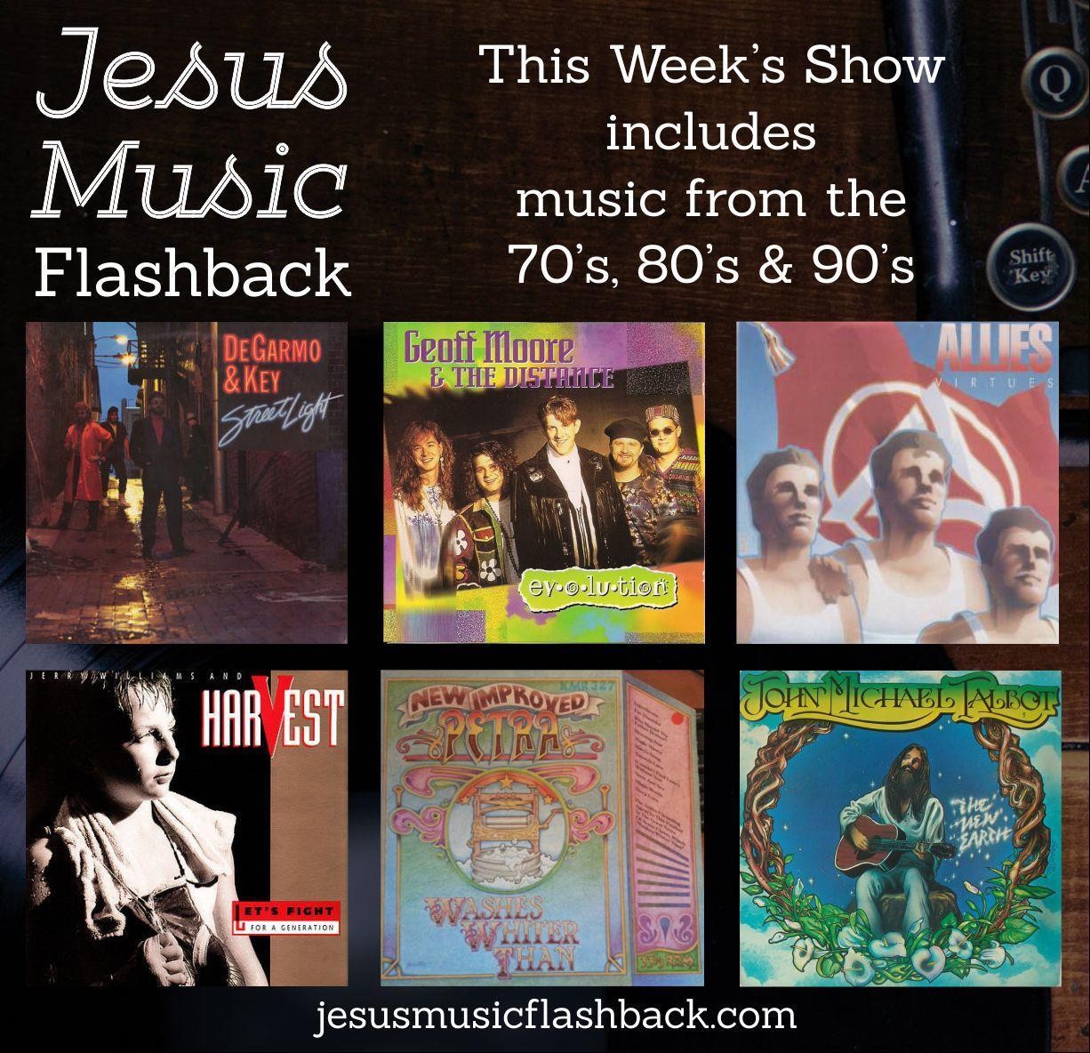 This weeks show is jammed pack with great music from Degarmo & Key, Geoff Moore & the Distance, Allies, Jerry Williams and Harvest, Petra and John Michael Talbot. We touch three decades of great music in this weeks show. Hope you enjoy it! Write us at jesusmusicflashback@gmail.com with your prayer or song requests. God bless you!