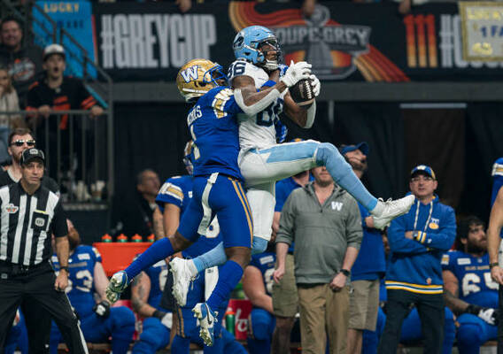 Dustin Nielson and Mike Benevides are on the call for the first half of action between the Toronto Argonauts and Winnipeg Blue Bombers at the 111th Grey Cup.