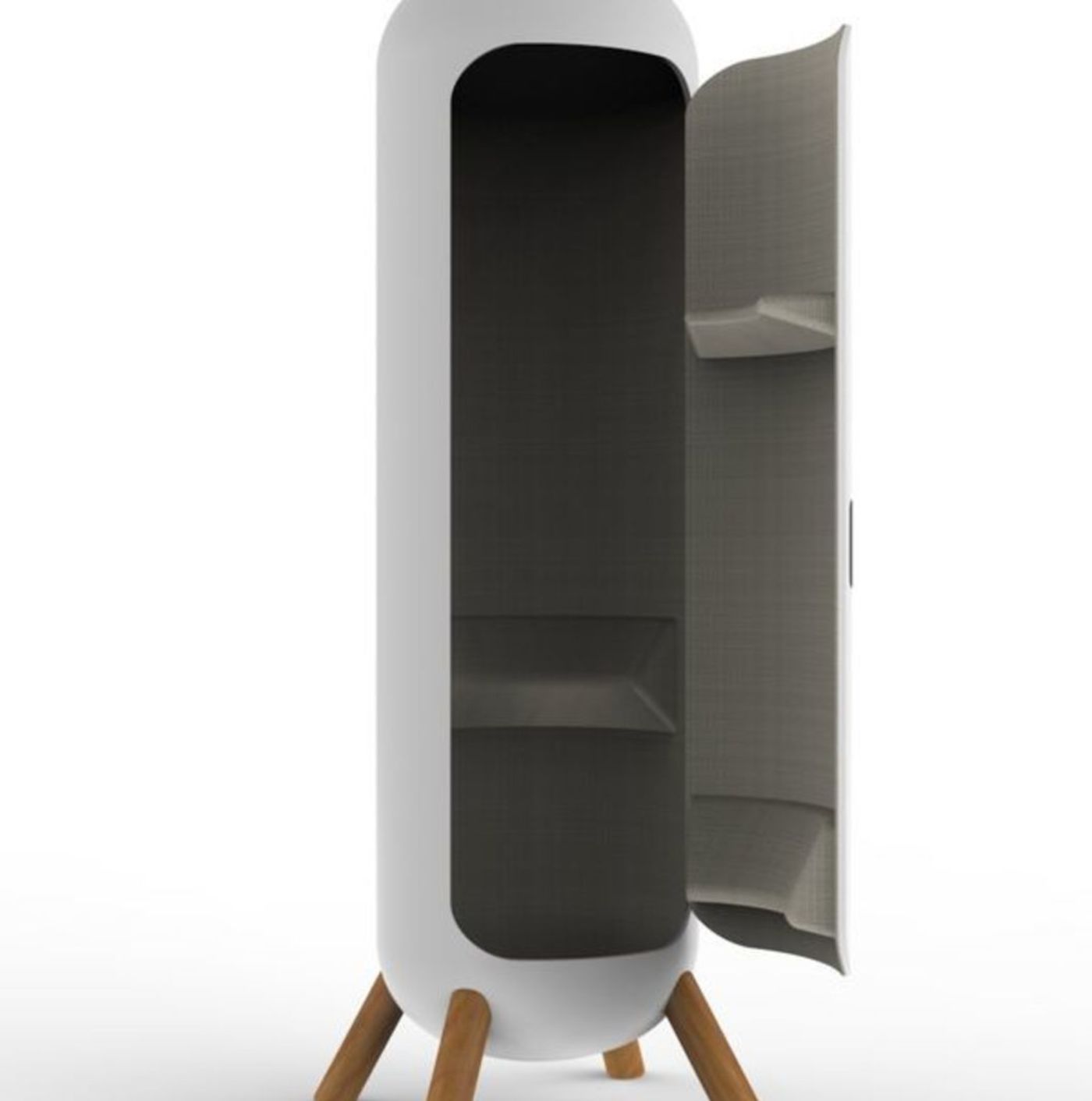 Each one has three small shelves inside, strategically placed to support your knees, head, and butt. So you're partially supported, but still vertical.