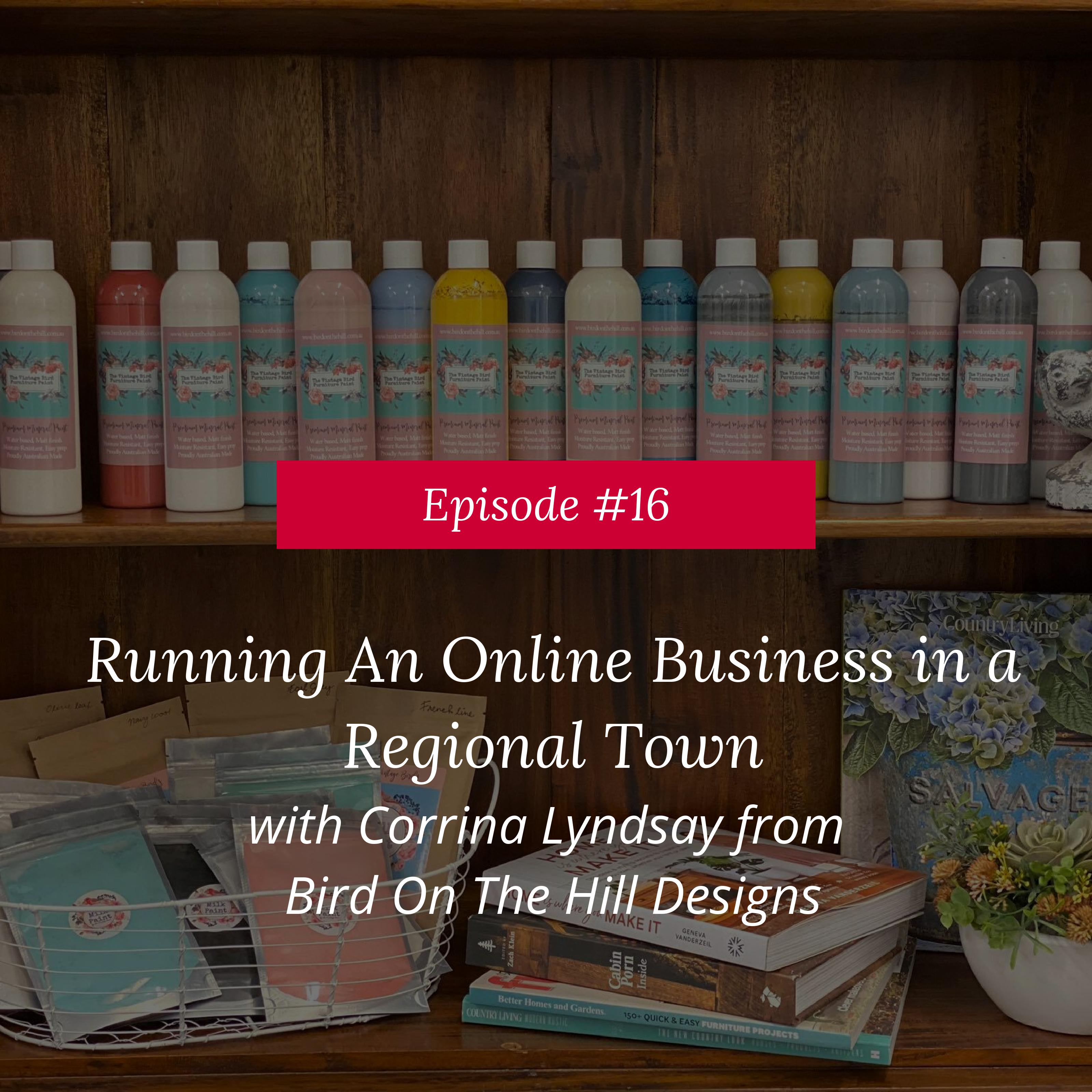 Corrina from Bird on the Hill Designs, a furniture painting and decorating company, joins us on this week's podcast to share her experiences about running a business from a regional town.