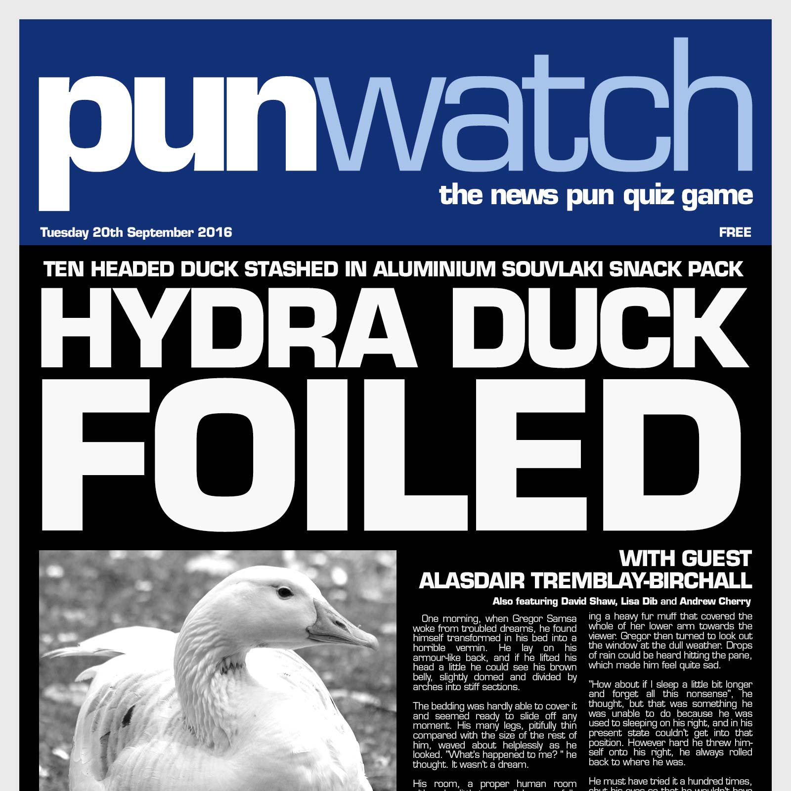 This episode is entitled "Hydra Duck Foiled." Thanks to Punwatch Contributor Hamish for the excellent Kim DotCom story!