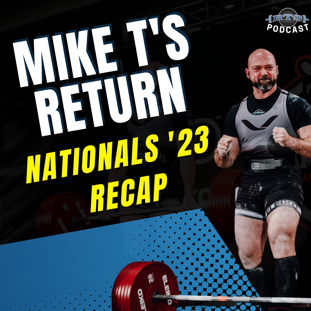 RTS Coaches Mike Tuchscherer and John Garafano sit down to talk about Mike's return to his first national event at Powerlifting America Nationals 2023. Mike talks about his mindset going into comp and specifically whether he was going to compete at all given his injury just a two weeks out from competition.