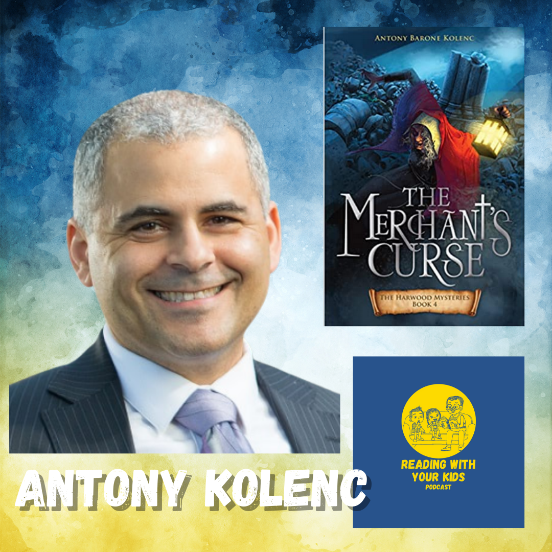 Antony Kolenc returns to the #ReadingWithYourKids #Podcast to celebrate book four in his exciting Harwood Mysteries fiction series. School Library Journal says this series is "An engaging medieval adventure with appeal that transcends its denominational press." Tony tells us that in Book Four, The Merchants Curse, when a merchant appears to be cursed by a witch, a peasant boy in medieval England races against time to save the man's life while avoiding capture as a suspected traitor to the king.