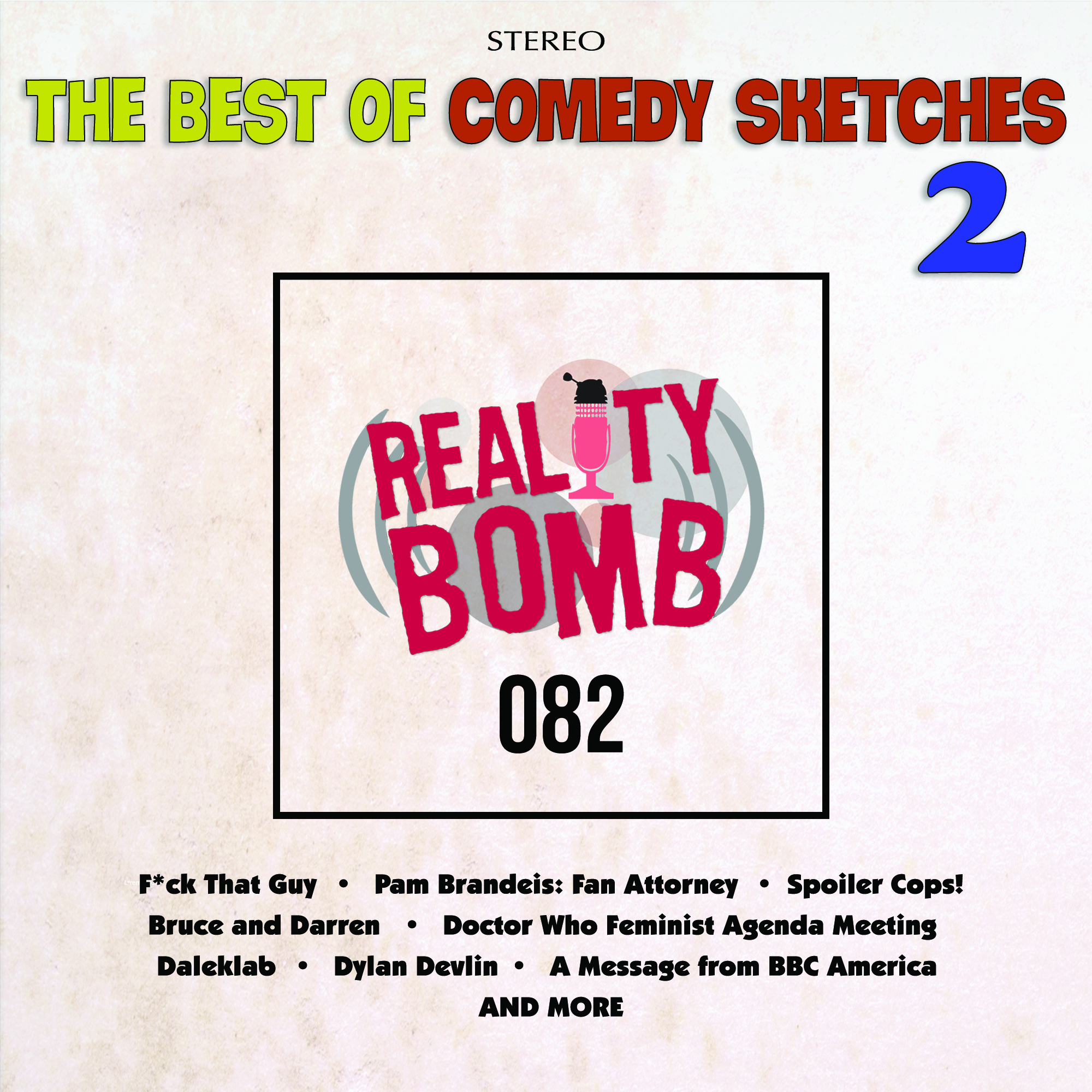 On the eighty-second episode of Reality Bomb, we've given over the whole episode to revisit the best of our comedy sketches as selected (mostly) by you, the listener! Join Joy Piedmont and comedy sketch performers Kim Rogers, Bill Evenson and Drew Meyer as they go back through the past seven years of Reality Bomb comedic highlights including "F*ck That Guy", "Watch This Space", "Bruce and Darren in the Logos Operation", "Pam Brandeis - The Whofauldi Brief", "A Message from BBC America", "Doctor Who Feminist Agenda Meeting", "Daleklab 1 - Speculation", "Dylan Devlin: How to Lose Your Shit as Doctor Who Fan" and much more! Plus we offer a new version of "Spoiler Cops! - The Hostage Panel"
