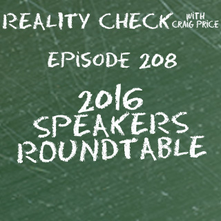 Mary Kelly, Jason Kotecki, Jessica Pettitt and Thom Singer (@marykellyspeaks, @kimandjason, @jesspettitt and @thomsinger on Twitter) join host Craig Price for his 2016 Speakers Roundtable. Each year, Craig gathers the best minds in the speaking industry to sit down during the National Speakers Association's annual convention (this year in hell...I mean Phoenix.) to discuss the state of the industry, what new things are happening, what issues are affecting the speaker population and whatever else may pop up. This year, Craig sat 4 talented past guests to discuss marketing and the resulting conversation covered so much more. They discussed capitalism, charity, tapping into your talents, differentiating yourself, referring other speakers and the hottest of topics...when during the podcast would Jessica swear. These panels are always the most requested episodes of Reality Check and this year is no exception. Celebrate Craig's birthday by enjoying a gift he gives to himself and to you...his annual speakers roundtable.