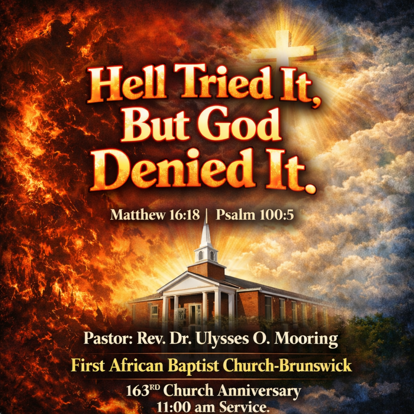 “Hell Tried It, But God Denied It” The Promise That the Gates of Hell Shall Not Prevail Historic First African Baptist Church 1416 Amherst Street • Brunswick, GA