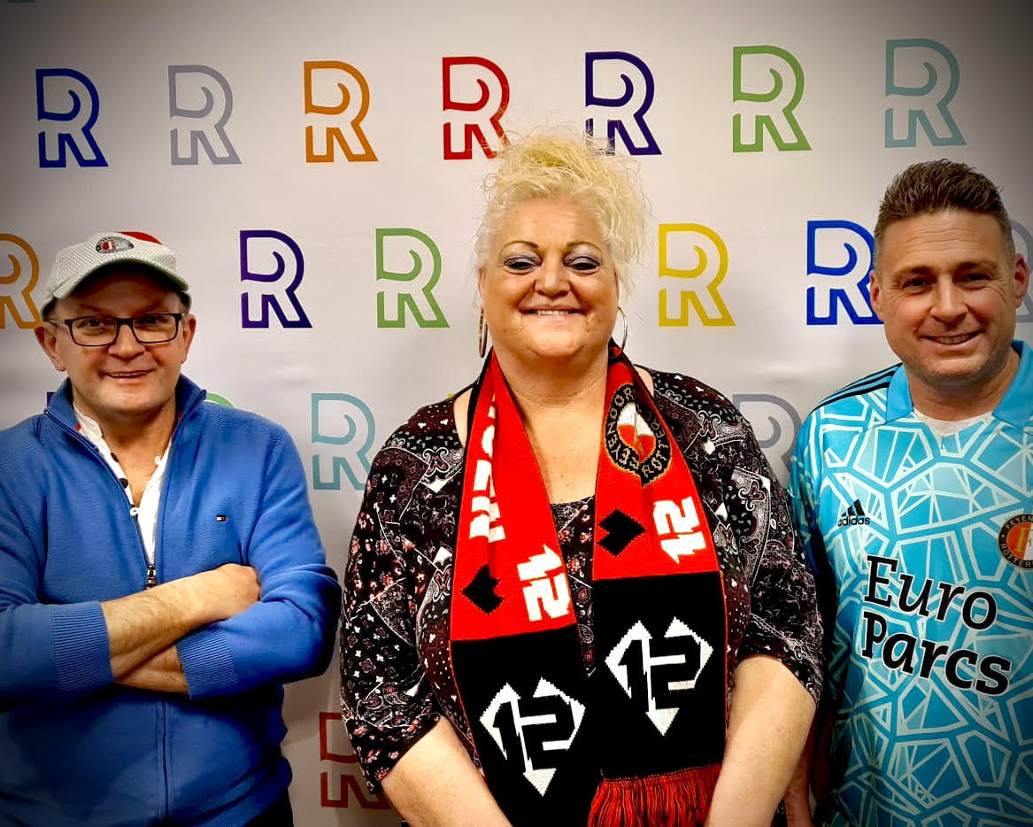 Gehuld in Feyenoordshirt, sjaal en gelukspet stormen ze de studio binnen. En na een aarzelende start (zo'n studio is toch best spannend) barsten ze los: over hun liefde voor Feyenoord, het verdriet in mindere periodes, trouwen in de Kuip, het maken van een Feyenoord-roos en drie dikke duimen voor de huidige trainer van Feyenoord, Arne Slot. 'Slot is god' valt onvermijdelijk.