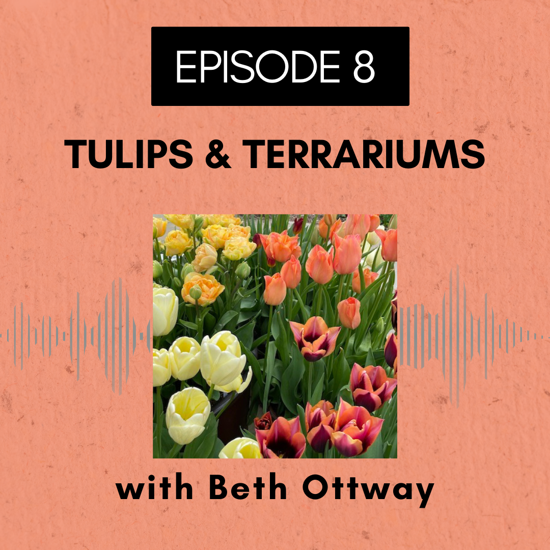 Beth Otway AKA Pumpkin Beth has turned terrarium gardening into a perfectly balanced combination of science and art. Sarah reads excerpts from her interview with Beth and also talks about when to order your tulips and offers some suggestions for ones to look out for.