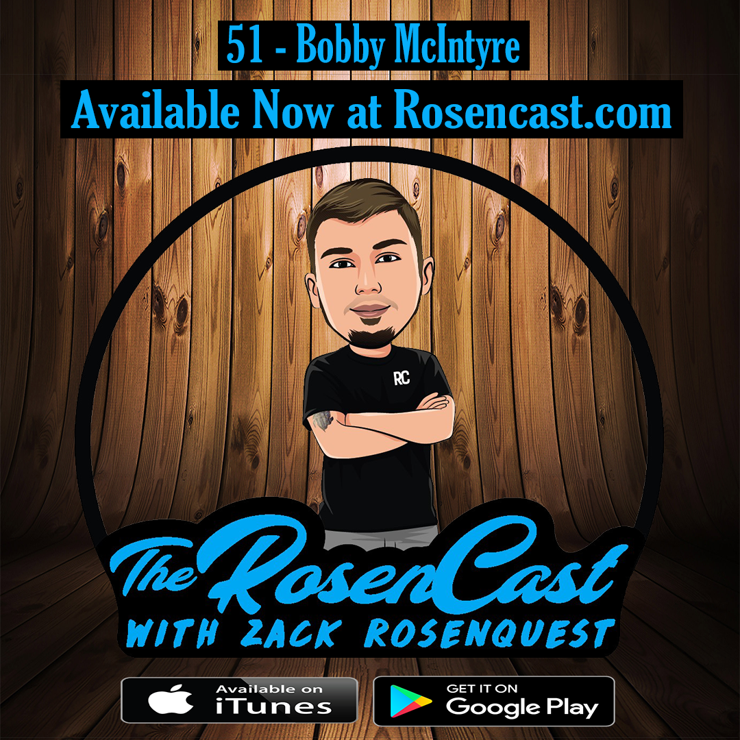 This weeks episode Professional Fighter Bobby Mcintyre stops by the Rosen1Studios to talk with Zack Rosenquest about how he got started fighting, overcoming a loss, and using social media to help grow your brand as a fighter.