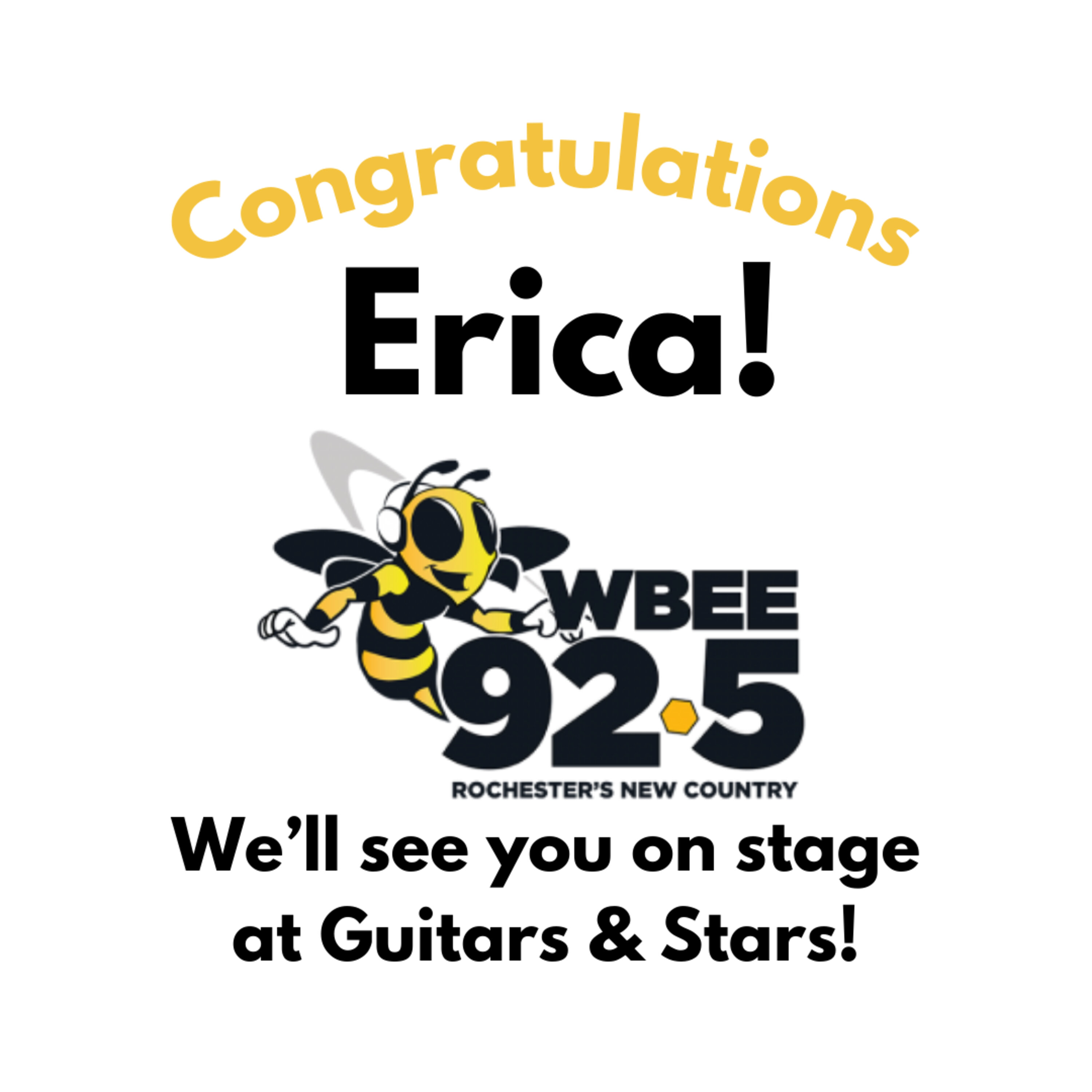 Erica will open the Guitars and Stars show next week with the National Anthem!!! Congrats and thank you to all those who entered !!