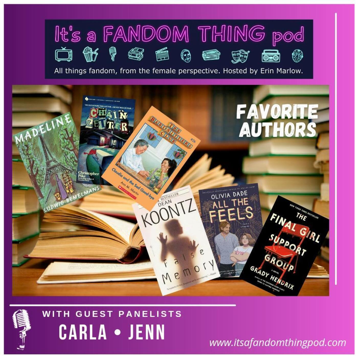 On this episode, Carla from Bed, Wed, or Behead Pod and Jenn from My Streaming Bubble, join Erin to discuss some of their favorite authors. We've got everything from childhood favorites to some romance, and spine-tingling horror!