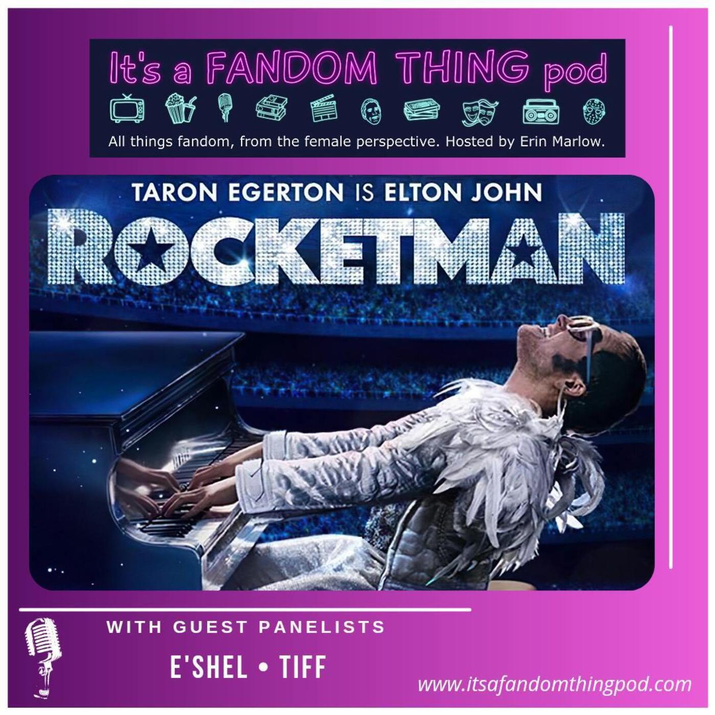 This week, E'Shel from Liberty Diner Dish and Tiff join Erin to discuss the 2019 film Rocketman. They talk about why it works as a biopic, their favorite musical numbers, and why Taron Egerton should have won an Academy Award. Check out the carpool karaoke featuring Taron Egerton and Richard Madden: https://www.youtube.com/watch?v=ZWxvKoO0teI&list=PLNvGzRl2HxBF8qumRIPKTJXi1XrUT5kN9.
