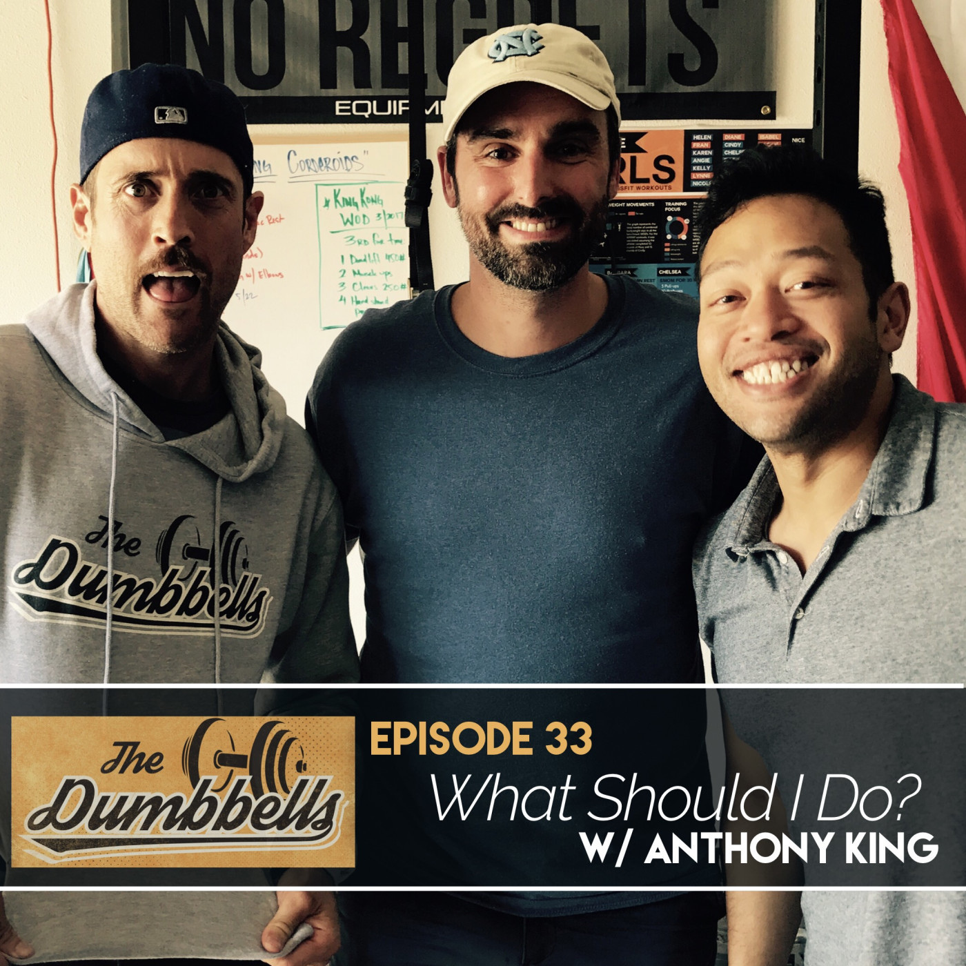 Episode 33 is here! And it's with TV writing royalty and co-host of the great podcast Don't Get Me Started, Anthony King. The Dumbbells and King talk about his various writing gigs and he recently signed on to write for Silicone Valley. A little bit of his health and fitness history is discussed and then King takes over and starts asking the 'Bells questions. The boys answer his questions about a personal training/hibernate situation and then also on how he should progress with his health and fitness. Last the group all "Weighs in" on the gym etiquette for the communal TVs.
