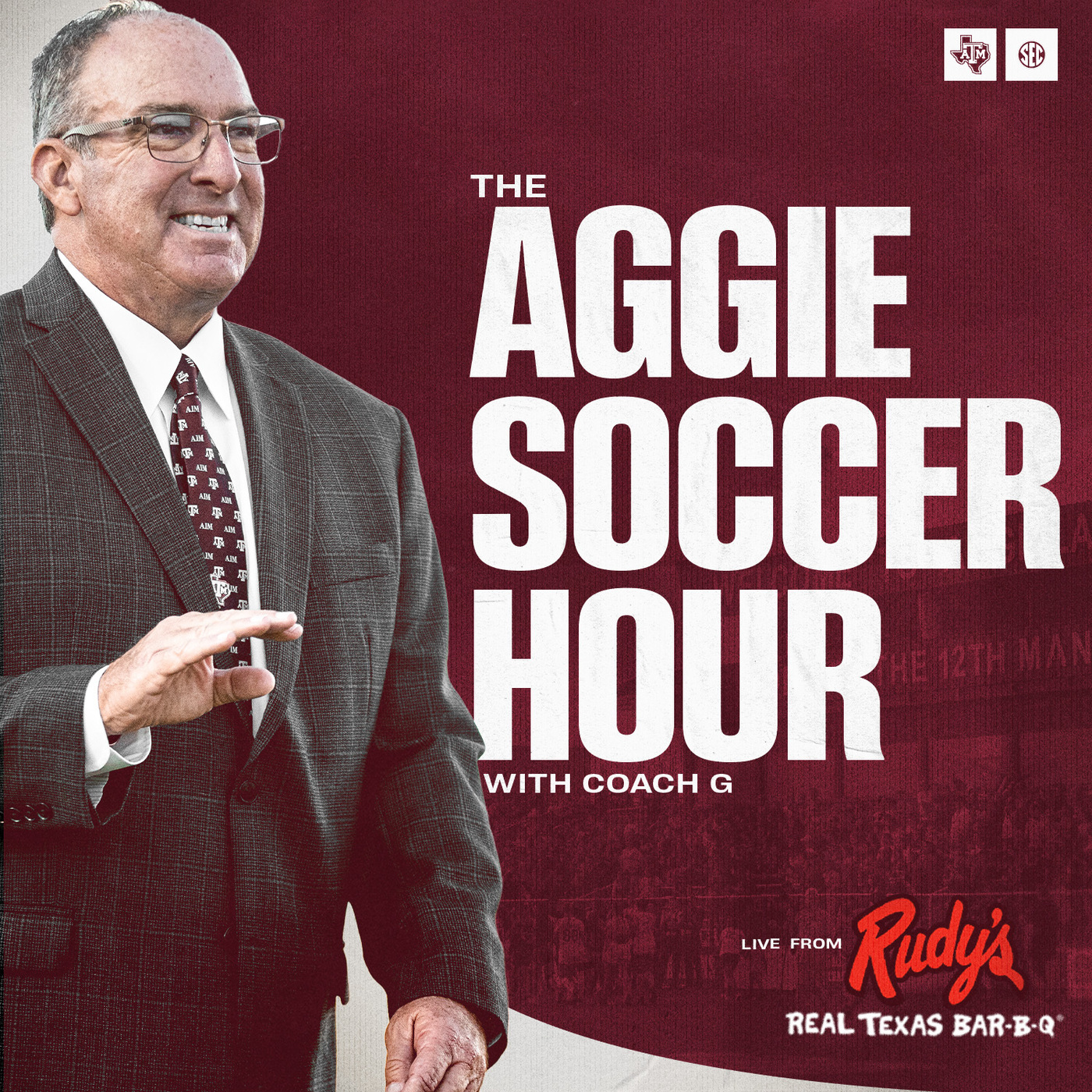 The Aggie Soccer Hour originates on select Tuesdays during the season from Rudy's Country Store & BBQ on Harvey Road in College Station. Visit 12thman.com/soccerhour for more information and a full schedule.