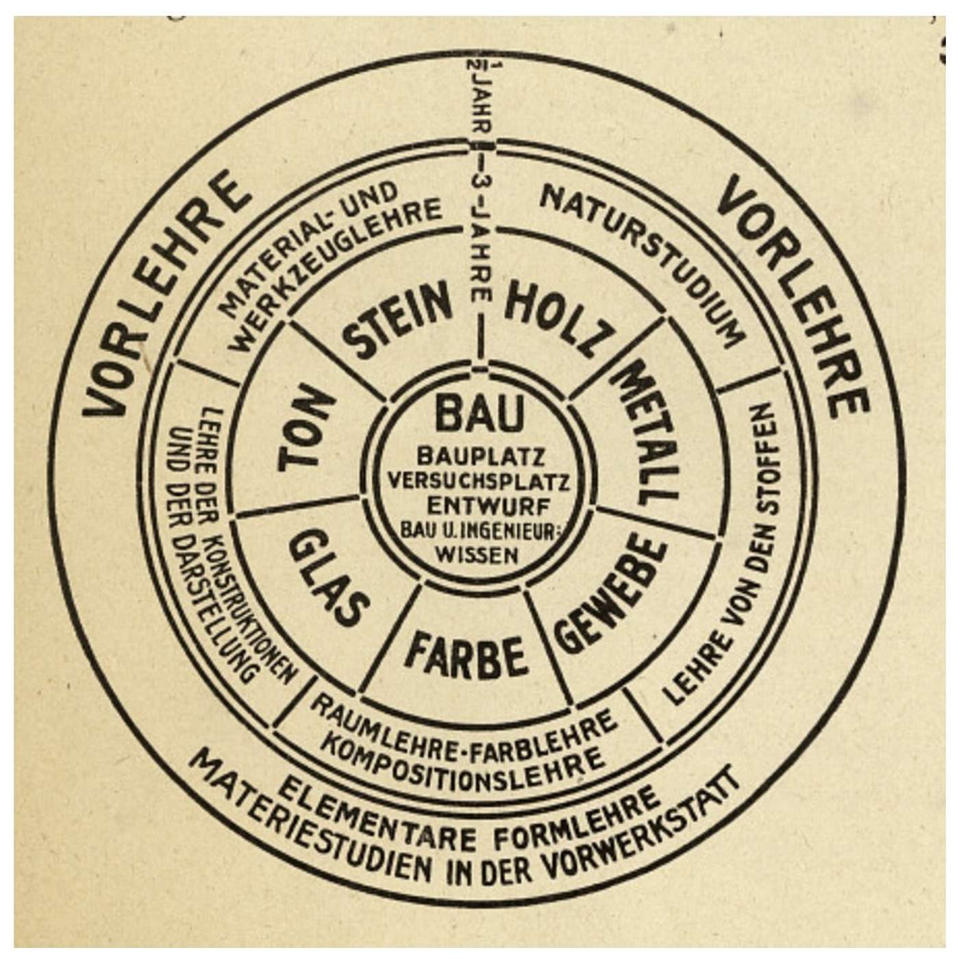 ©️Talk Architecture 2023, Author: Naziaty Mohd Yaacob. Photo credit - Basic Curriculum of the Bauhaus "This conceptual diagram showing the structure of teaching at the Bauhaus was developed by Walter Gropius in 1922" Link: https://www.bauhaus.de/en/das_bauhaus/45_unterricht/