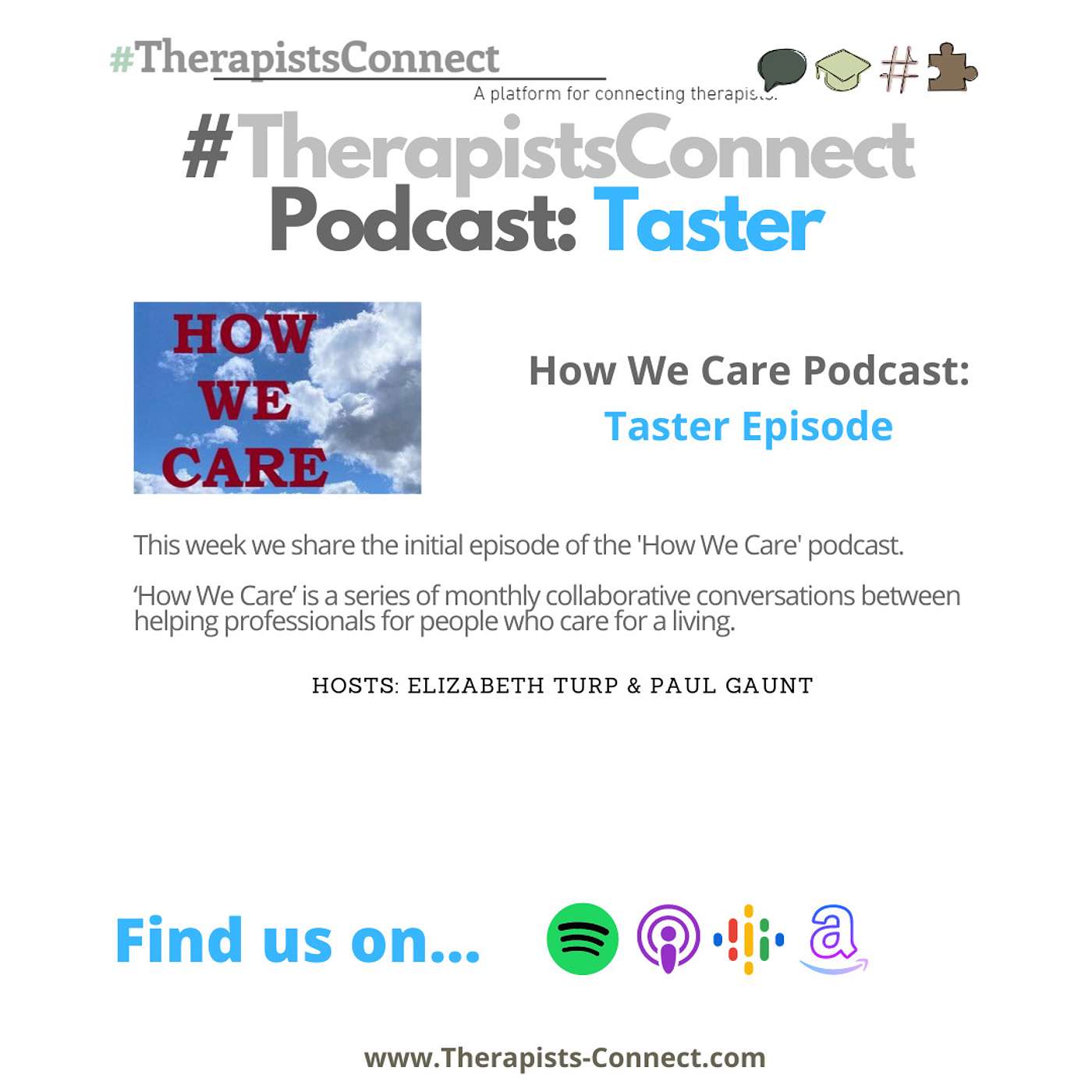 ‘How We Care’ is a series of monthly collaborative conversations between helping professionals for people who care for a living. Hosts Elizabeth Turp and Paul Gaunt.