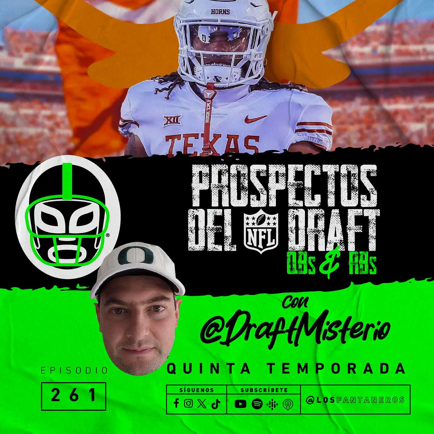 Como cada año, el mismísimo Draft Misterio nos acompaña para evaluar los mejores QBs y RBs prospectos para el próximo Draft de la NFL. También comentamos las noticias más recientes alrededor de la liga.