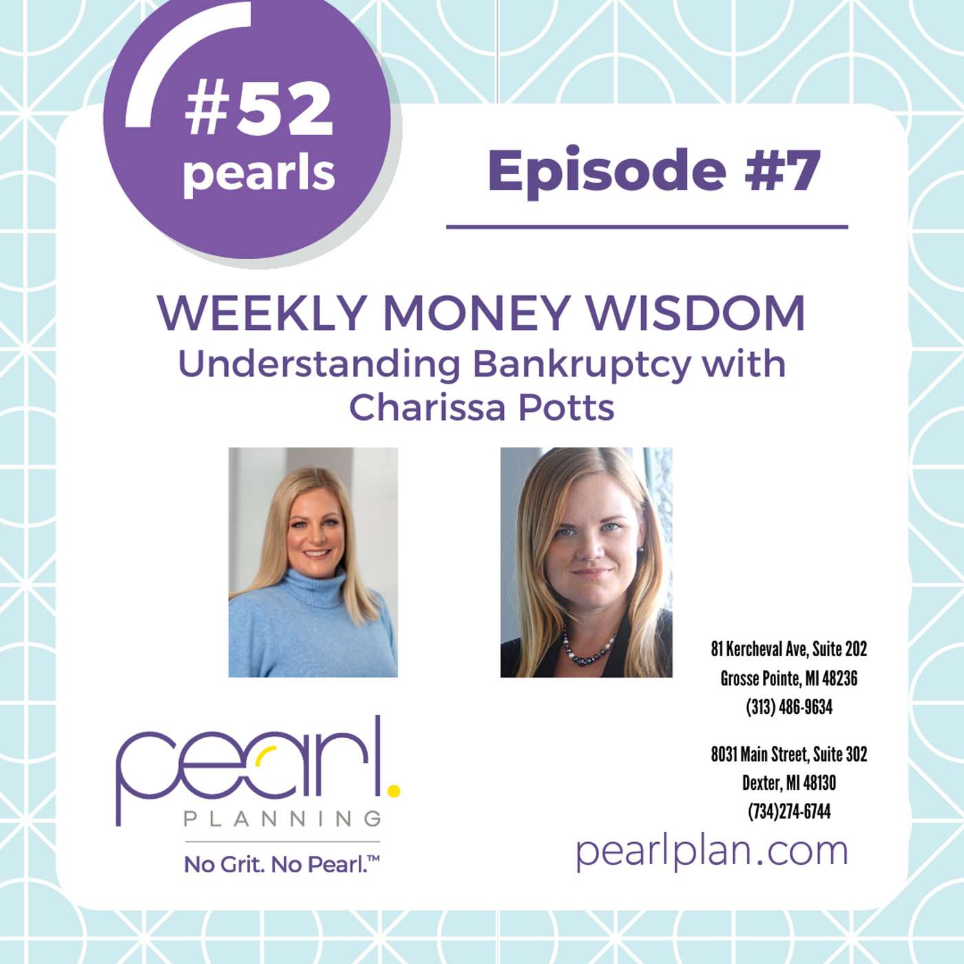 Melissa Fradenburg, Financial Advisor in Grosse Pointe with Pearl Planning is joined by special guest Charissa Potts of Freedom Law, PC and they’re talking all things Bankruptcy. Charissa formed her consumer bankruptcy-focused firm in 2014. www.freedomlawpc.com She was recently named to the prestigious American Bankruptcy Institute (ABI) 2019 “40 under 40” class of top bankruptcy practitioners nationwide.