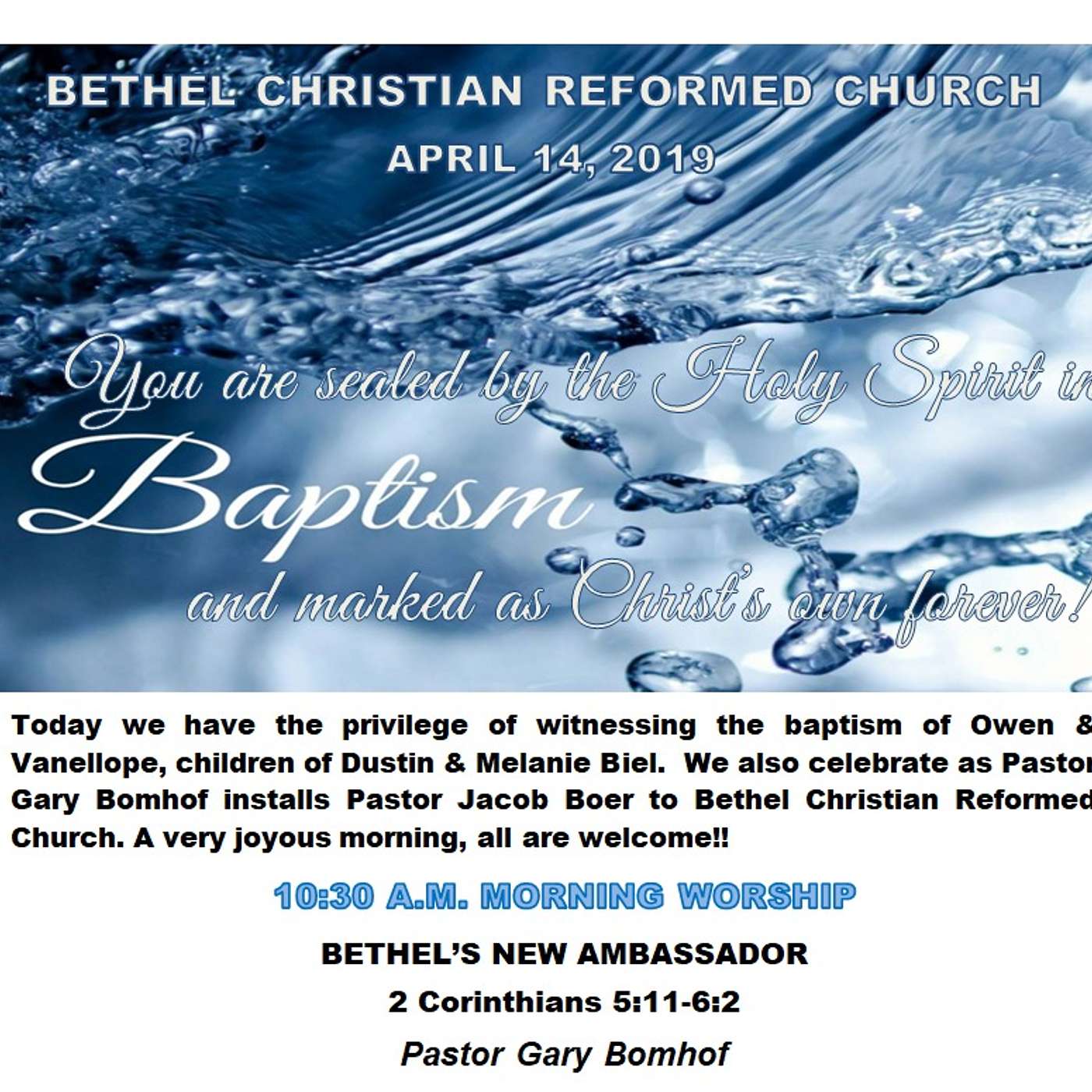April 14/19 BETHEL'S NEW AMBASSADOR